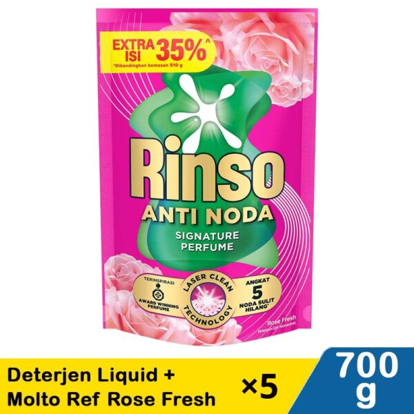 【Kombo 5 Pack】Rinso Deterjen Liquid + Molto Ref Rose Fresh 700g x5